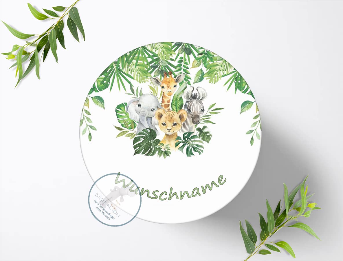Dschungeltiere Safari Tortenaufleger mit Wunschnamen Ø 20cm, 0274z